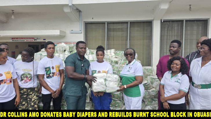 Renowned Obuasi-based businessman and philanthropist, Dr Collins Amo, has extended major support to the health and education sectors in the Adansi enclave. Through a dual intervention that includes the donation of 5,000 locally manufactured baby diapers to key health facilities and the complete reconstruction of a school block destroyed by fire, Dr Amo continues to demonstrate exceptional corporate citizenship. His latest initiatives highlight his commitment to improving maternal healthcare and enhancing access to quality education within Obuasi and its surrounding communities.